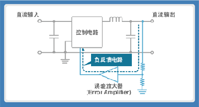 如圖所示,將DC-DC轉換器的輸出電壓與標準電壓相比,其誤差部分通過誤差放大器(ErrorAmplifier)發達后進行負反饋,從而得到一定的穩定直流電壓。但平滑電路的電感器(L)與電容器(C)會引起信號的相位延遲。相位延遲接近180°時會變為正反饋狀態,引起不穩定,從而產生振動。