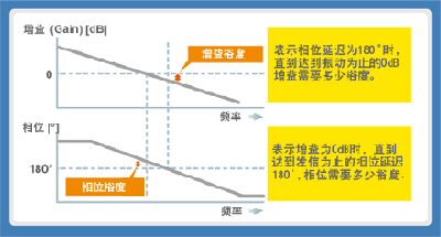負反饋是否穩定工作可通過稱為波德圖的圖表進行判定。該圖表的橫軸表示頻率,縱軸表示增益(Gain)與相位。