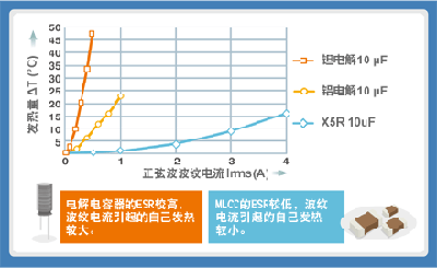 電解電容器擁有大容量的特點,但由于其ESR過高,因此波紋電流導致發熱過大是其缺點。