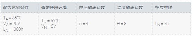 在此公式的基礎(chǔ)上,通過在更為嚴(yán)苛的條件(更高溫、更高電壓)下進(jìn)行加速試驗,可推算出產(chǎn)品在實(shí)際使用環(huán)境下的使用壽命。