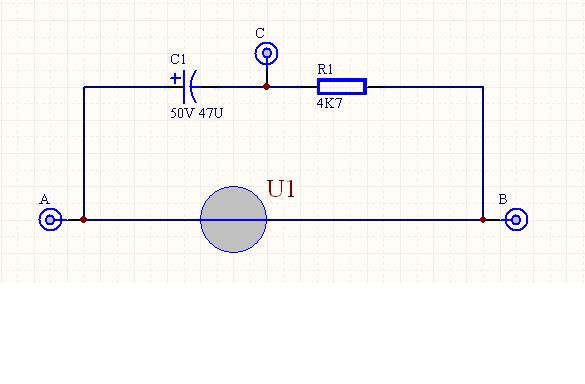 從這張圖看,如果上頻率是1KHz交流電時(shí),電容負(fù)端(C端)可以得到與A端相同的信號。