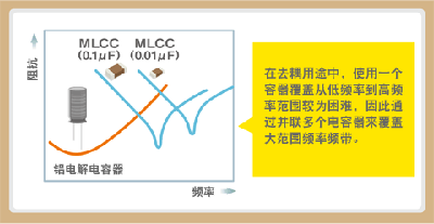 以往在模擬電路中,電解電容器與MLCC(積層貼片陶瓷片式電容器))會用于去耦而進行并聯,但大容量MLCC實現產品化后,將電解電容器更換為MLCC的情況越來越多。